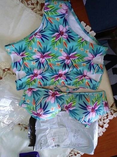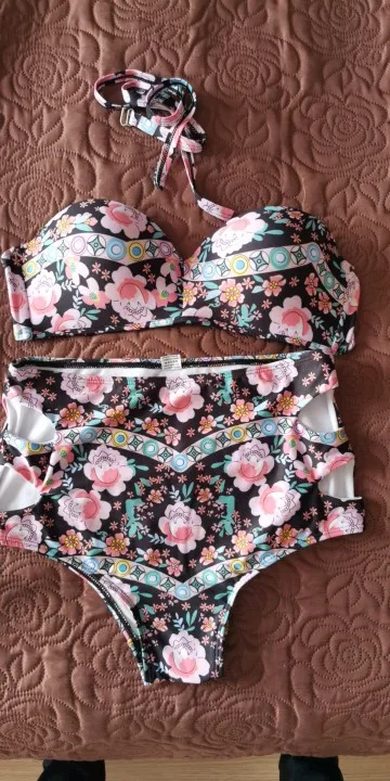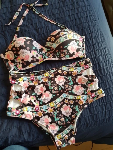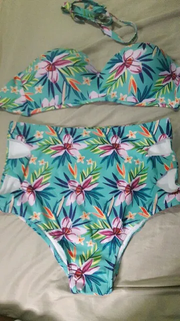 Sexy Floral printed bikini high waisted bikini halter Swimsuit